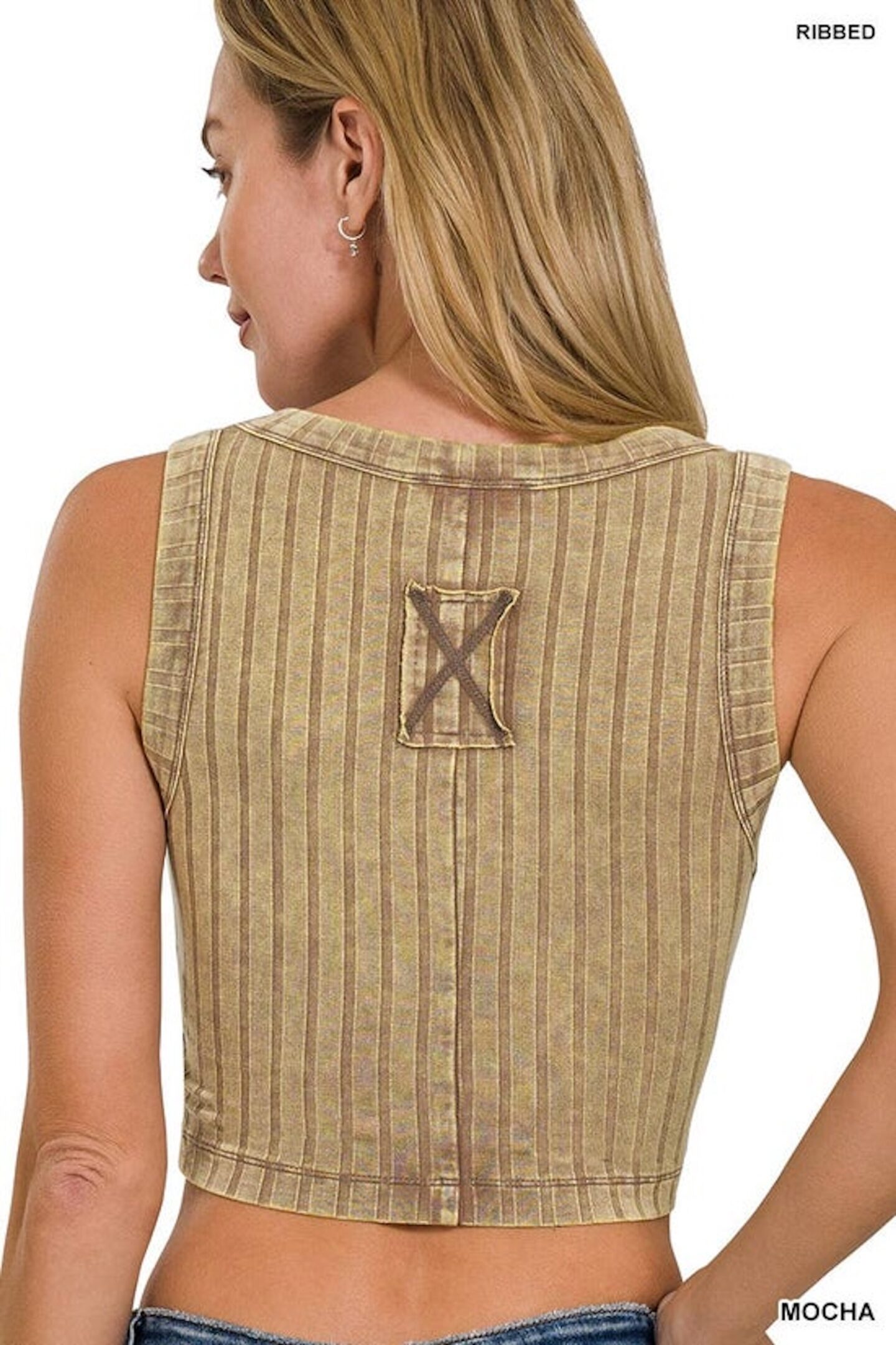 0801 Ribbed Sleeveless Scoop Neck Cropped Tank Top SI-25894