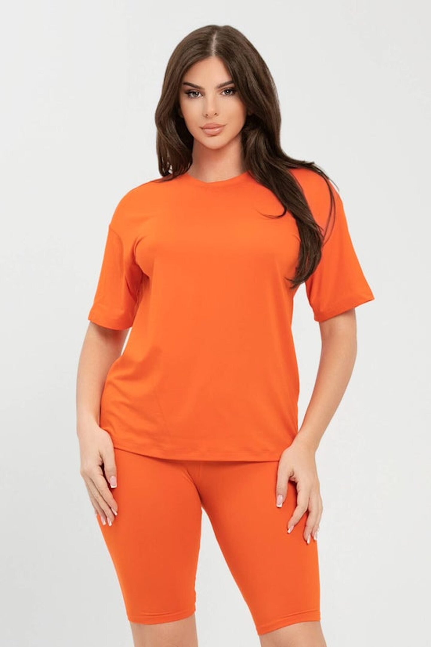 Brushed Dty Round Neck Basic T-Shirts Top and Bike Shorts Set
