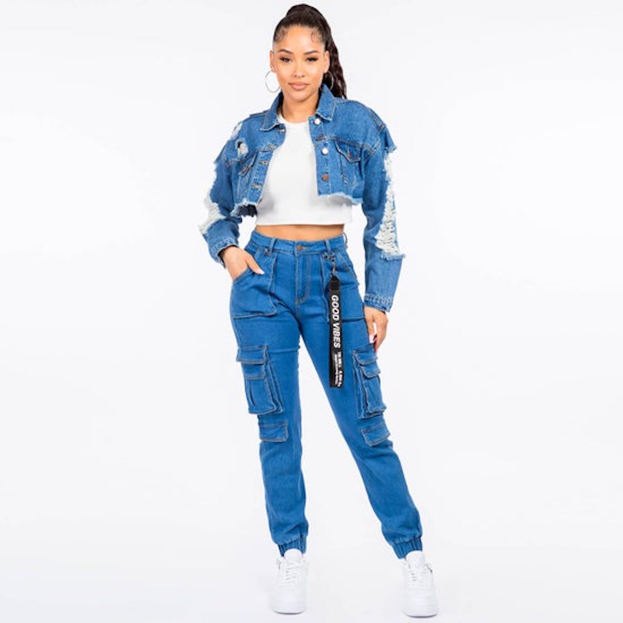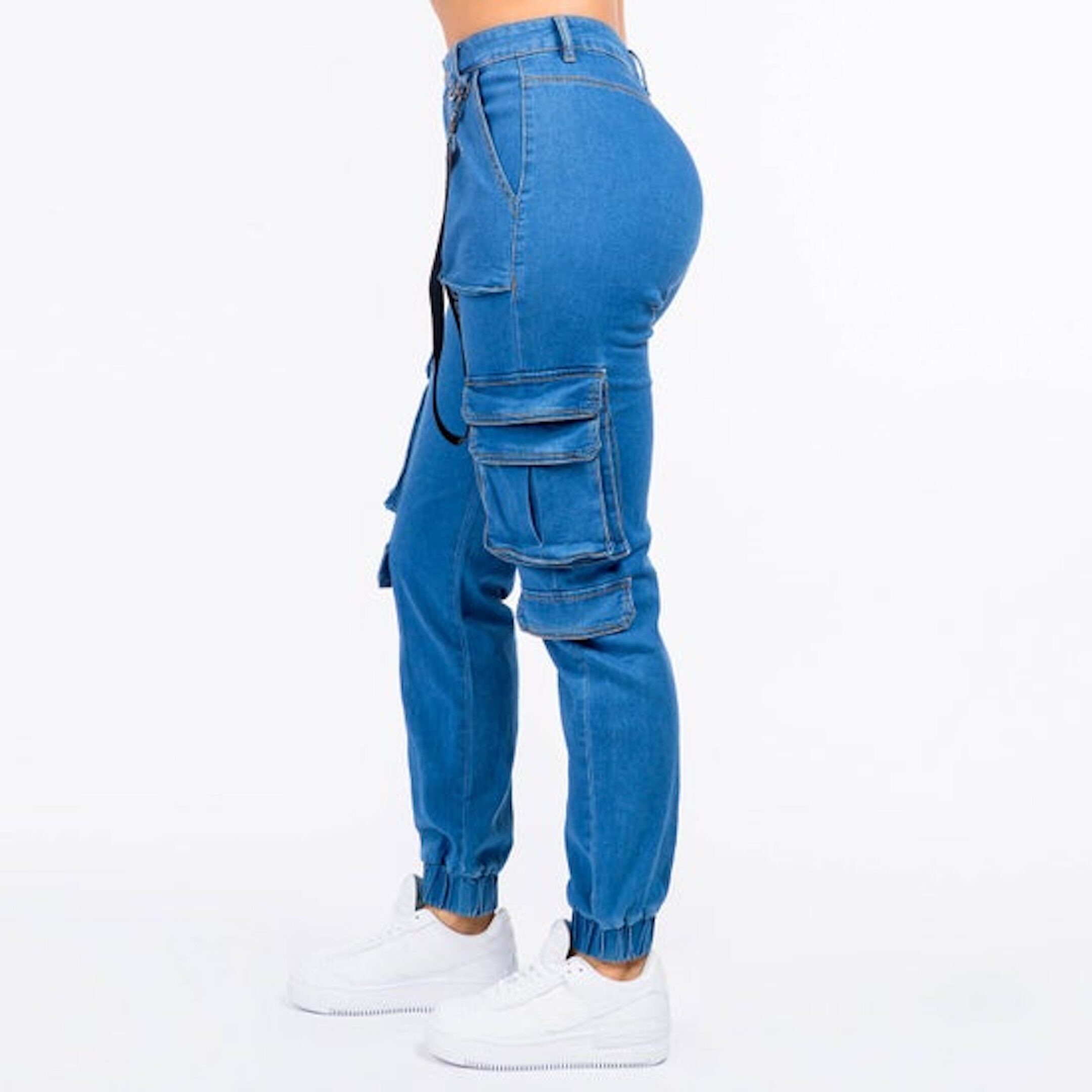 HIGH WAIST DENIM JOGGERS WITH UTILITY POCKETS