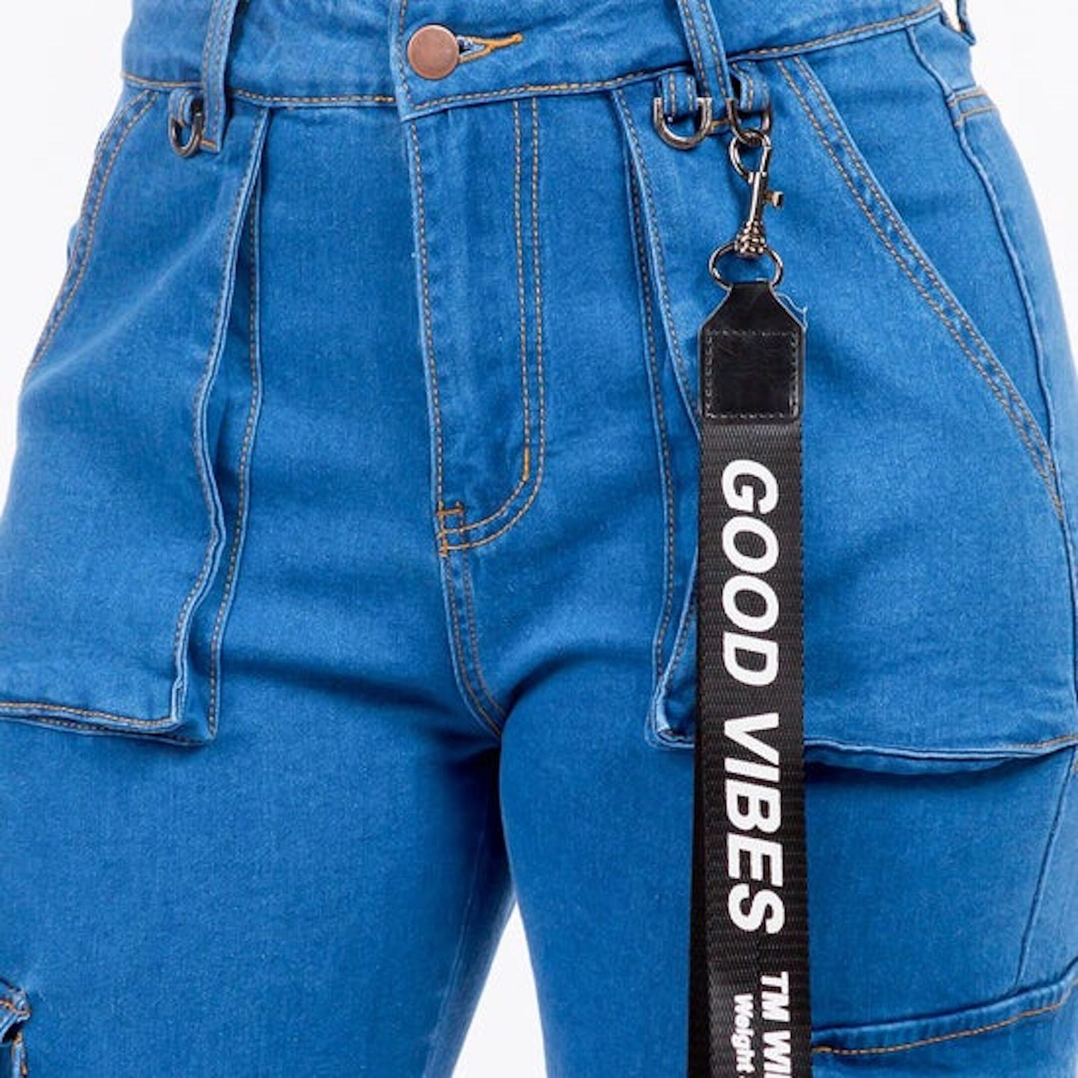 HIGH WAIST DENIM JOGGERS WITH UTILITY POCKETS-RJJ-3595