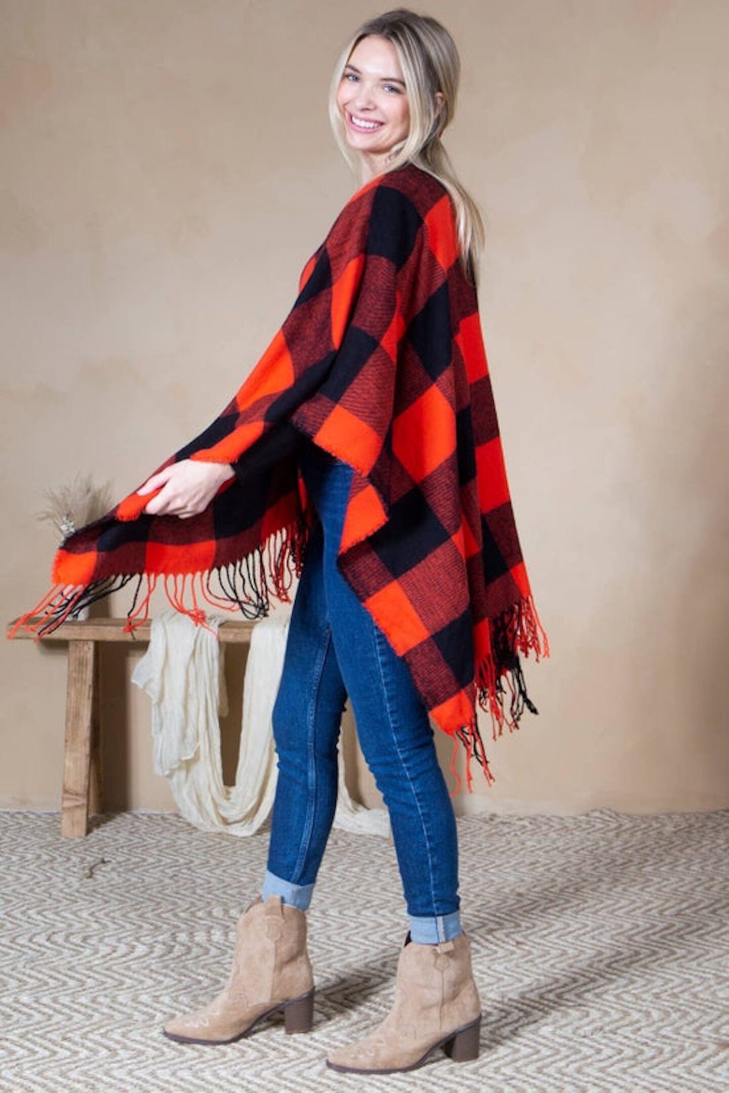 Mommy and Me Matching Cape Ruana Open Poncho – Buffalo
