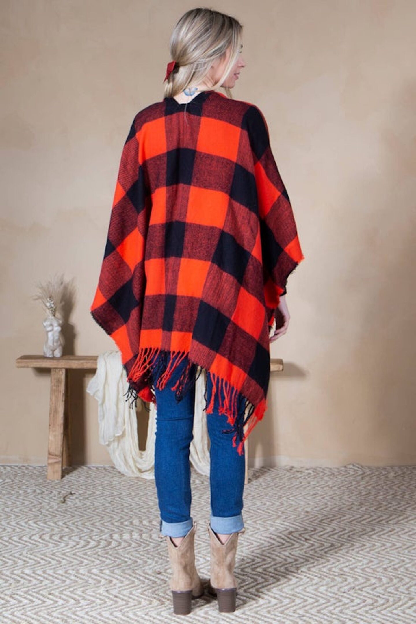 ✦PRODUCT DETAILS✦ Stay warm and stylish this winter season with our open shawl cardigan for women. Made with a soft and warm material, this blanket kimono cardi is perfect for keeping you cozy on chilly days. The cape shawl drapes beautifully over your shoulders and is designed to be worn open, making it easy to move in and perfect for layering. A buffalo plaid pattern that adds a touch of rustic charm, making it perfect for any occasion whether it is for running errands or going out for a family outing. It is perfect for gifting, family photography, and holiday outings. Available in different colors, this cape is a must-have for any fashion-forward mother-daughter duo.